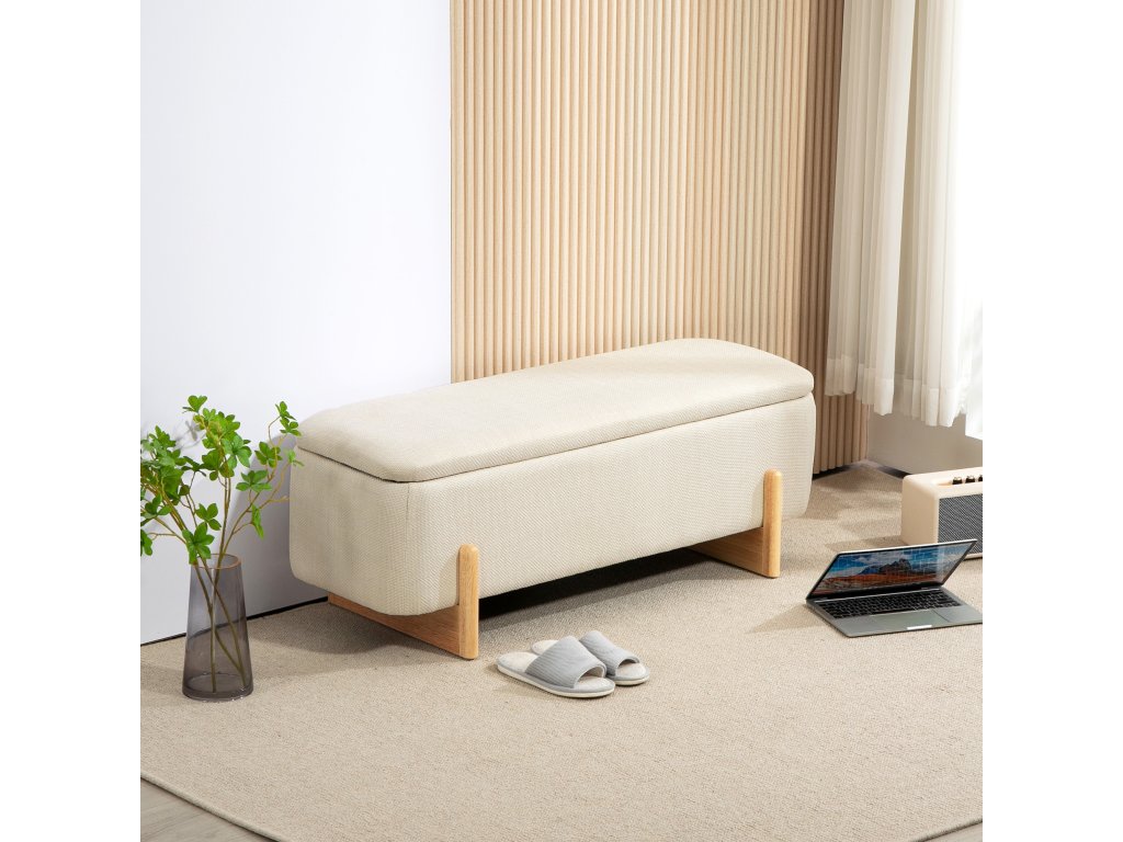 Čalouněná lavice s úložným prostorem 111 x 44 x 44,5 cm | krémová