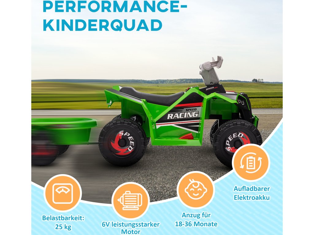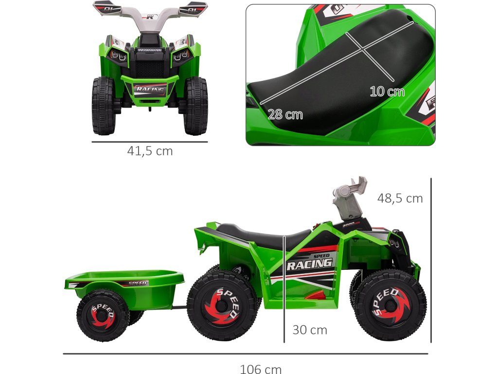 Dětská čtyřkolka s přívěsem | zelená