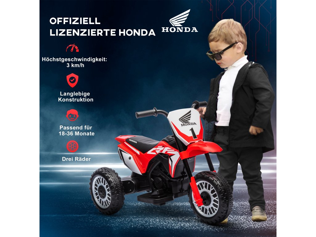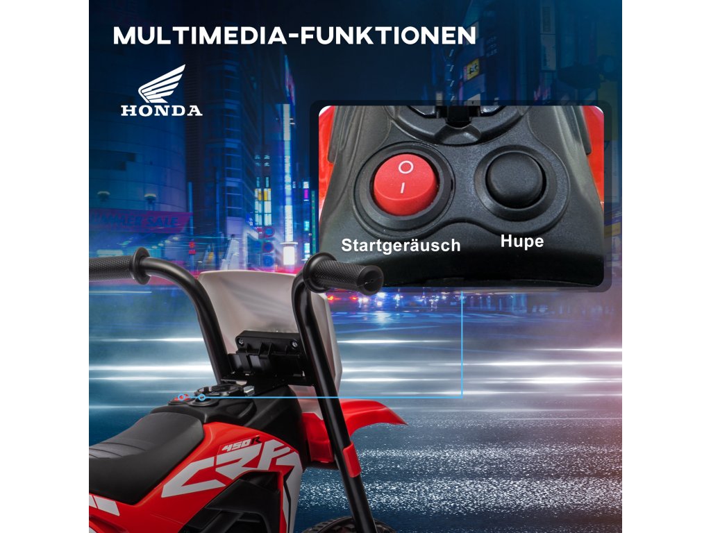- Oficiálně licencovaná dětská elektrická motorka Honda CRF450RL pro autentickou zábavu při jízdě.
