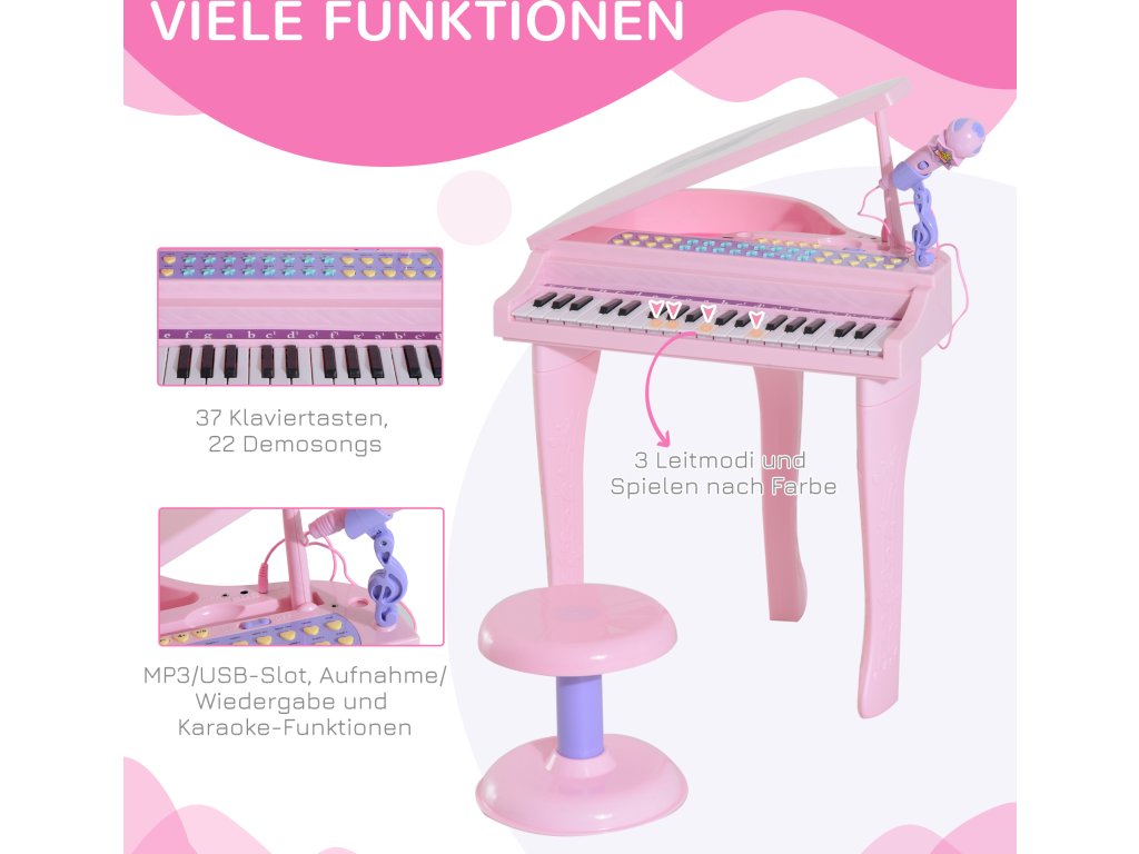 Máte doma malého hudebního nadšence? Pak je toto piano jako stvořené přímo pro něj. Růžové klávesy s mikrofonem a velké množství zábavných funkcí Vaše dítě uchvátí.