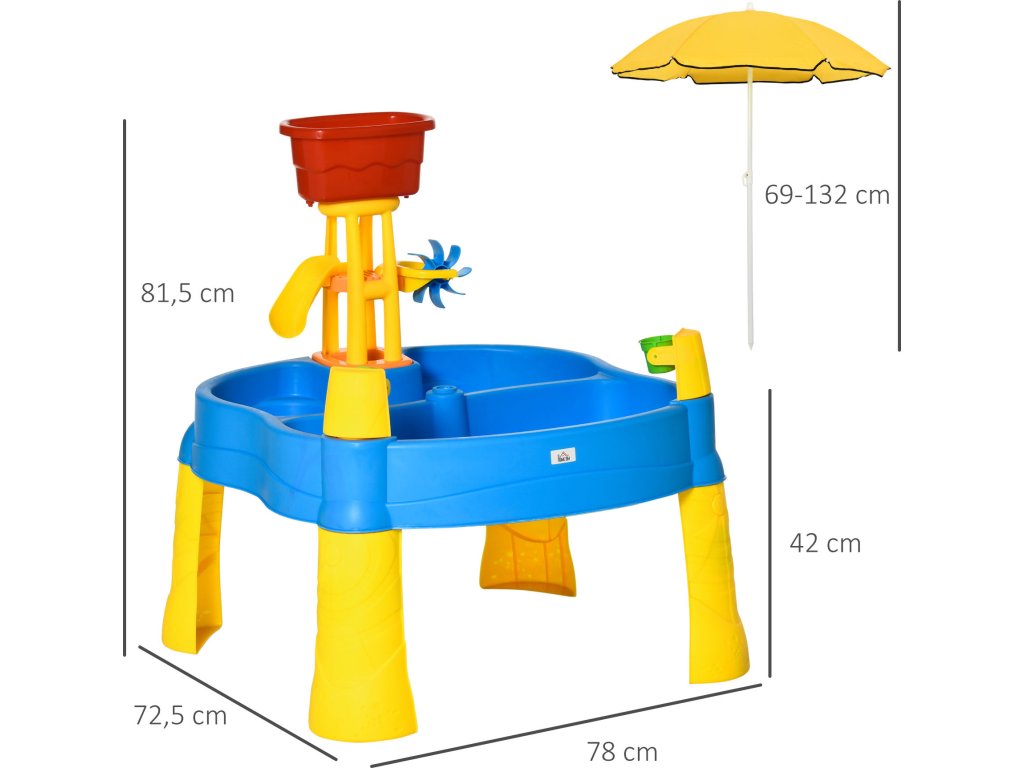 Dětský hrací stůl se slunečníkem | 72,5 x 78 x 81,5 cm