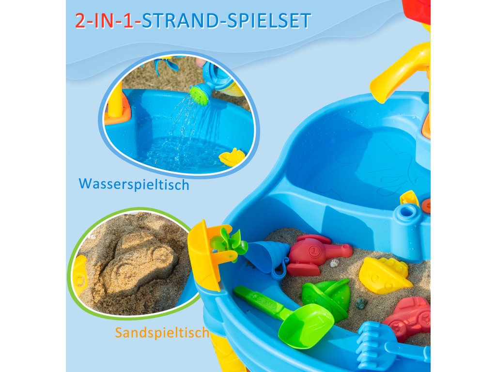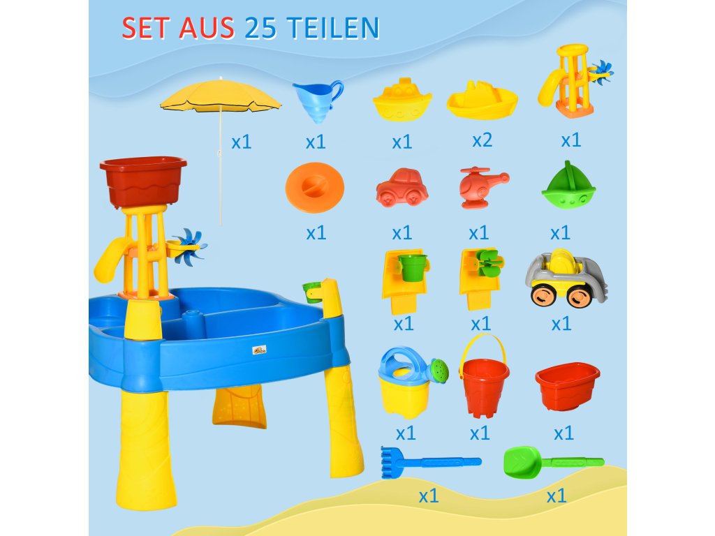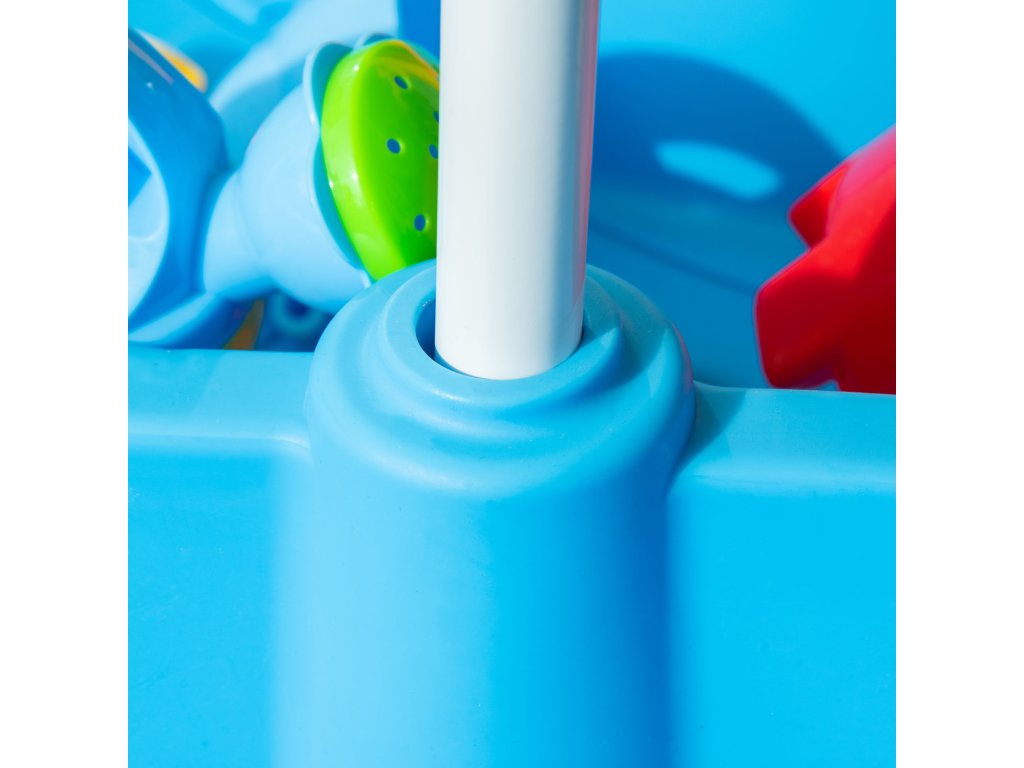 Nechte rozkvést fantazii a kreativitu svých dětí s tímto hracím stolem! Sada 25 kusů hraček obsahuje zábavnou loď, letadlo a figurku plachetnice. Díky nastavitelné sluneční cloně budou Vaše děti bezpečně chráněny před UV zářením. Tento vodní stolek je dostatečně velký, aby ho mohlo používat několik dětí najednou. Vaše děti si s touto sadou nejen užijí spoustu zábavy, ale také si hravou formou procvičí motoriku a představivost.