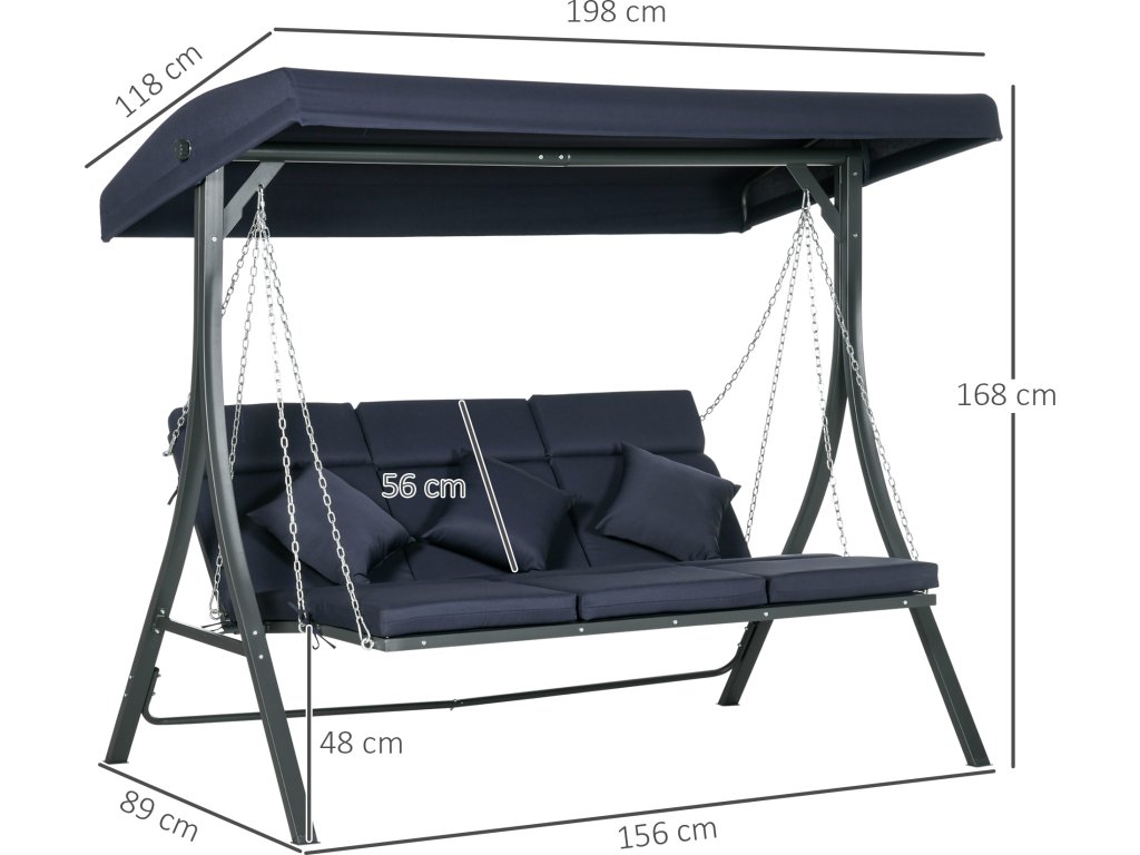 Houpačka pro 3 osoby 198 x 118 x 168 cm | tmavě modrá