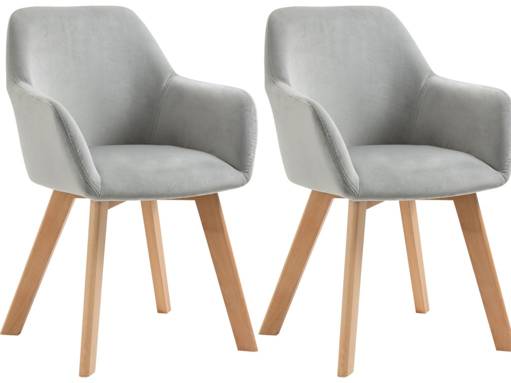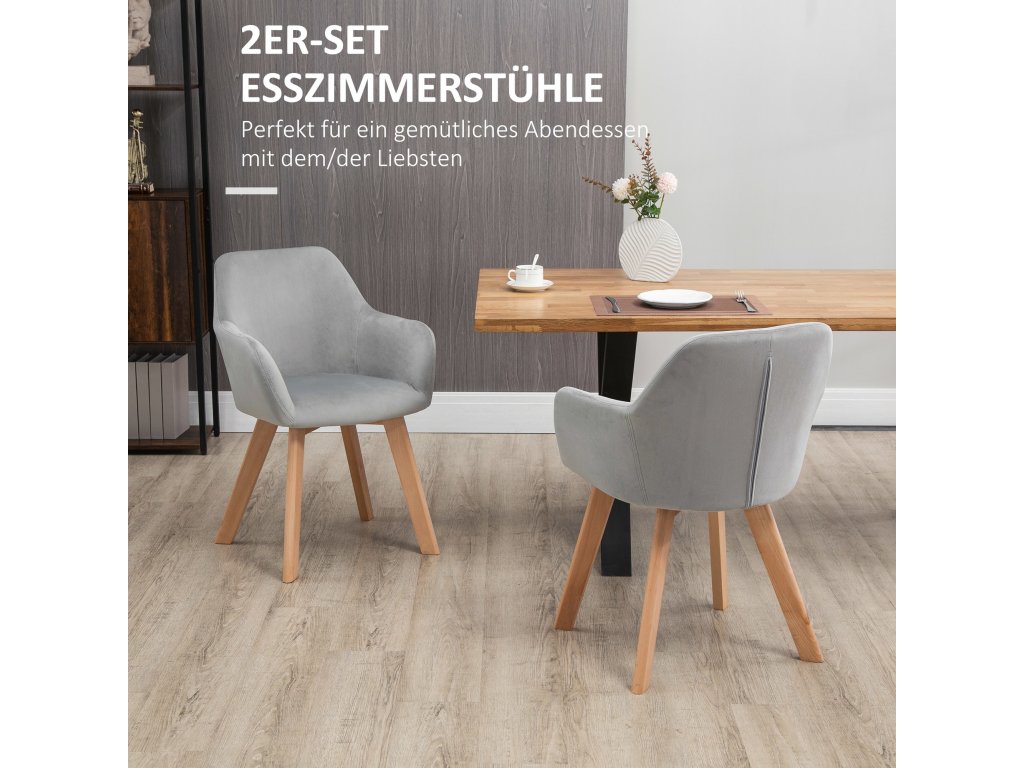 Vneste do svého domova styl s touto moderní jídelní soupravou židlí. Tato sada 2 židlí je ideální volbou pro Vaši jídelnu. Díky designu a neutrální barvě se skvěle hodí k Vašemu ostatnímu nábytku a dekoracím. Kuchyňské židle jsou čalouněné sametovou látkou a mají robustní nohy z kaučukového dřeva, které zajišťují pohodlné a stabilní sezení. Ideální do obývacího pokoje, jídelny, kanceláře apod.