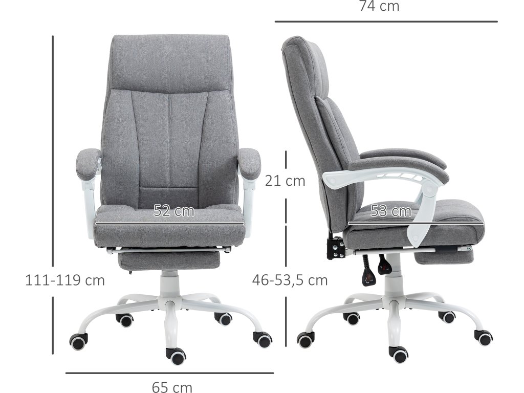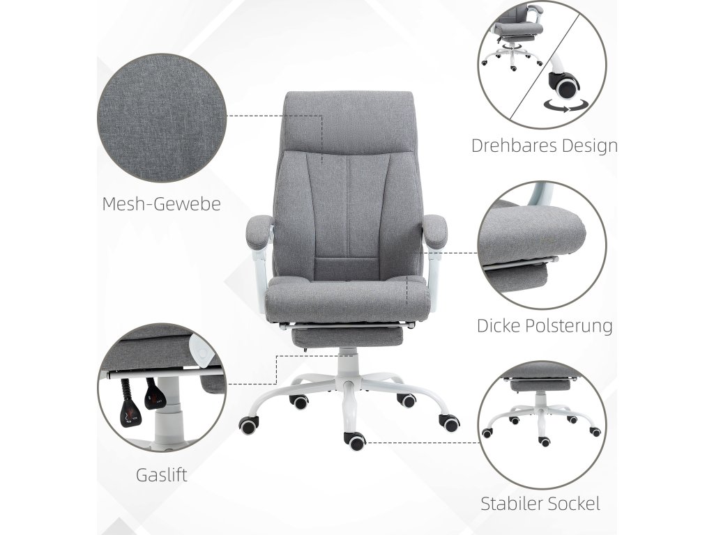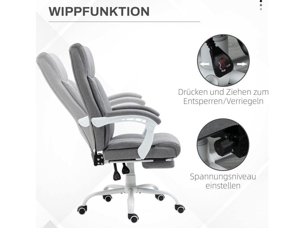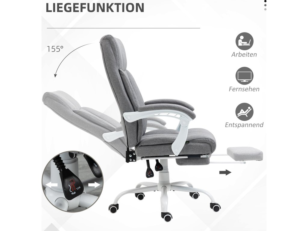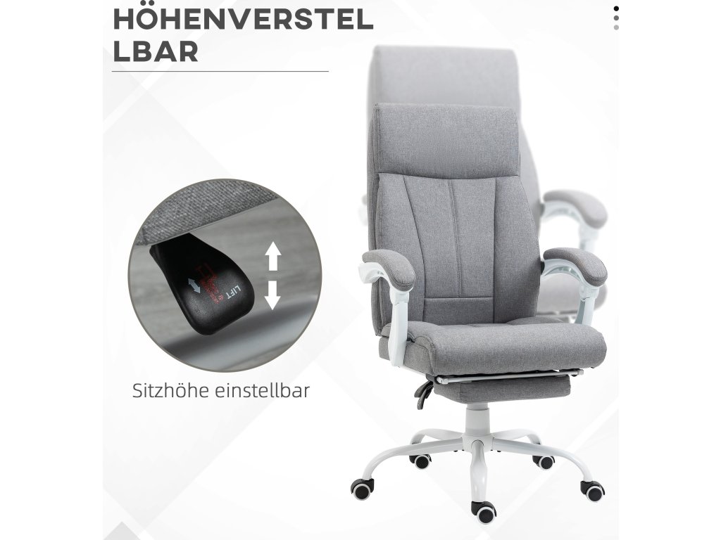 Užijte si dlouhý pracovní den s pohodlnou kancelářskou židlí. Opřete se až do úhlu 155° a využijte manuální opěrku nohou pro optimální relaxaci. Díky silnému čalounění a lněnému potahu šetrnému k pokožce nabízí maximální pohodlí. Výšku židle lze nastavit od 111 cm do 119 cm, což je ideální pro Vaši individuální pracovní polohu. Tato kancelářská židle v sobě spojuje pohodlí a funkčnost pro Vaši domácí kancelář.