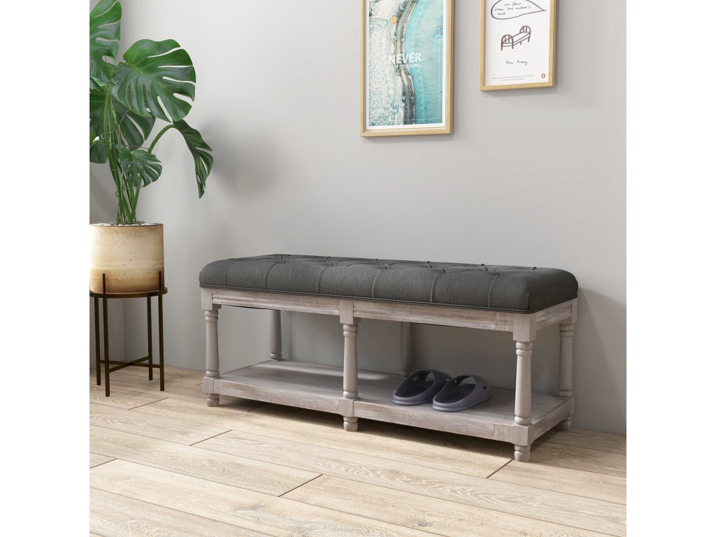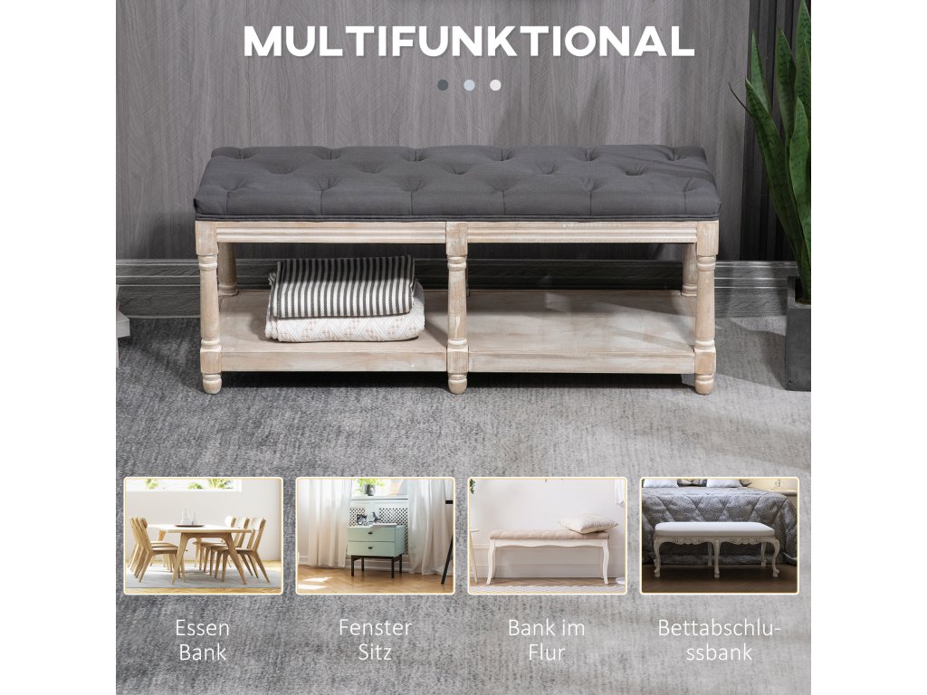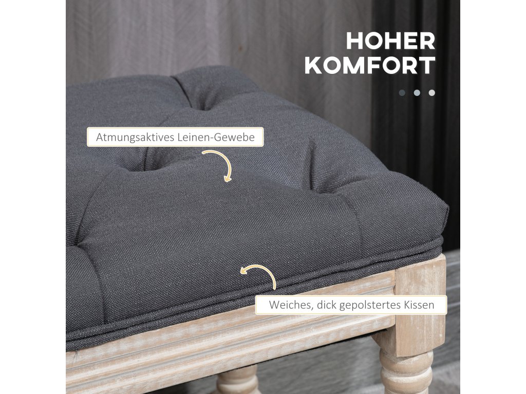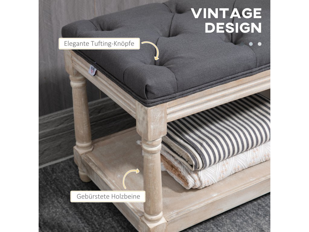 Dodejte svému domovu vkusný vintage nádech s touto elegantní lavicí na boty. Tato stylová lavice do předsíně kombinuje funkčnost s estetikou: prodyšný látkový potah a důmyslné prošívání knoflíků upoutají pozornost každého. Šest umně zakřivených nohou dokonale ladí s dekorativním interiérem a poskytují stabilní oporu. Pod sedákem se ukrývá praktický úložný prostor na knihy, hračky nebo deky, který udržuje pořádek.