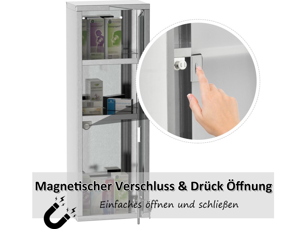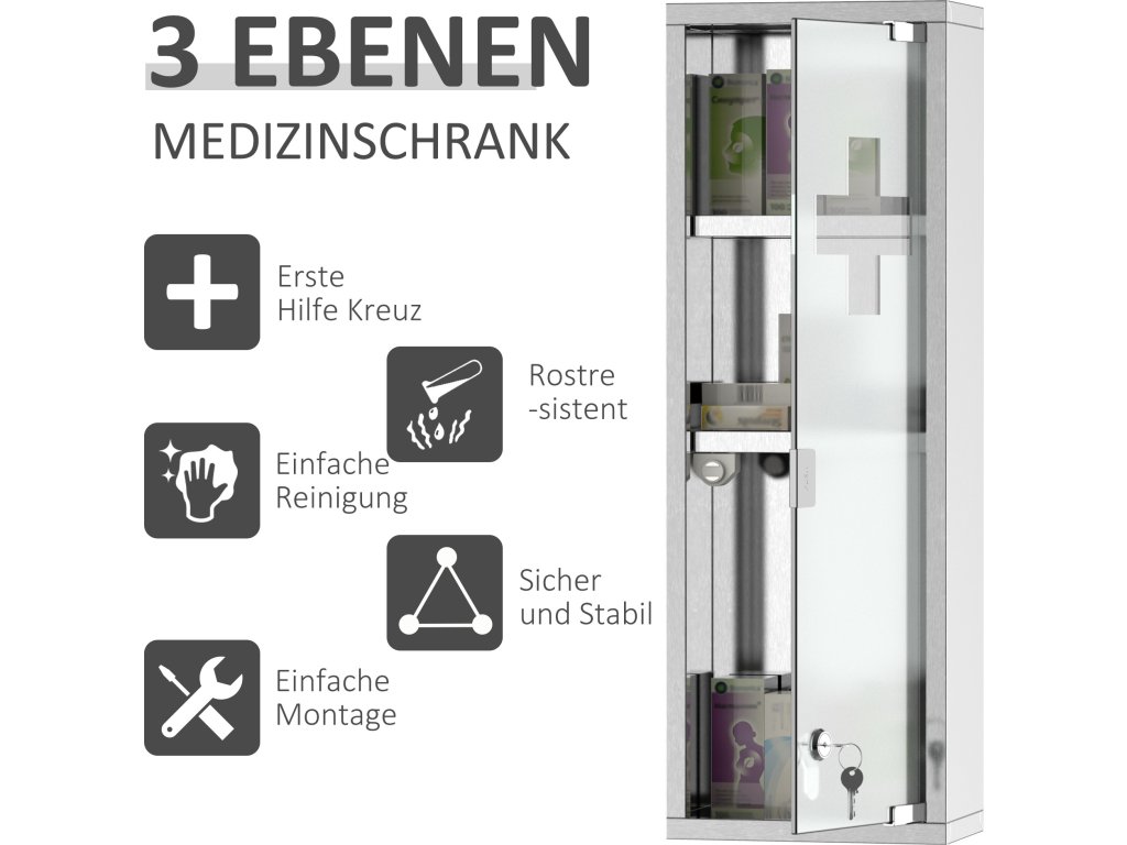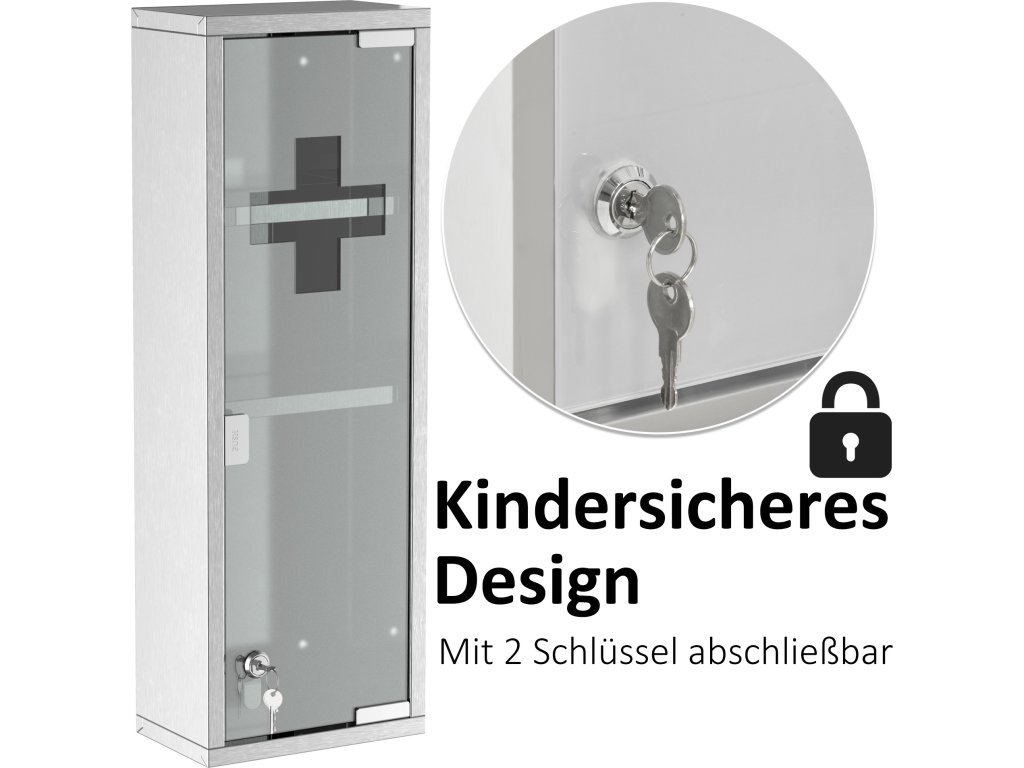 V domácnostech s dětmi a domácími mazlíčky je nutné uchovávat léky mimo dosah. Právě proto je tato nástěnná skříňka na léky se 2 klíči nezbytným vybavením všech domácností. Uvnitř se nacházejí police, do kterých můžete uspořádat a oddělit léky, které je třeba uchovávat odděleně od sebe. Na přední straně je křížek první pomoci, takže jej v případě nouze snadno rozpoznáte.