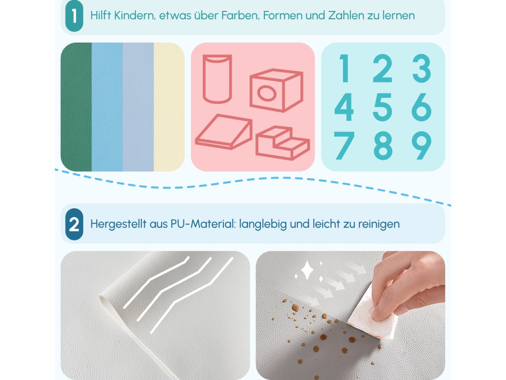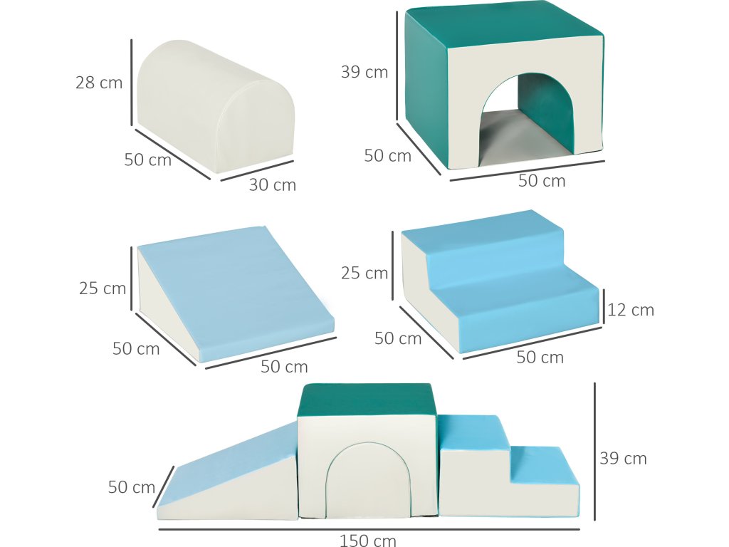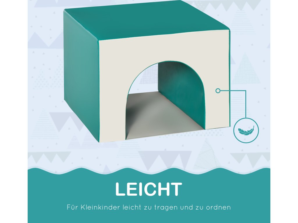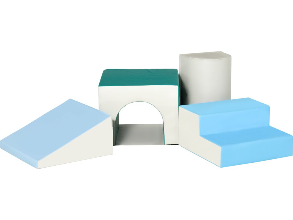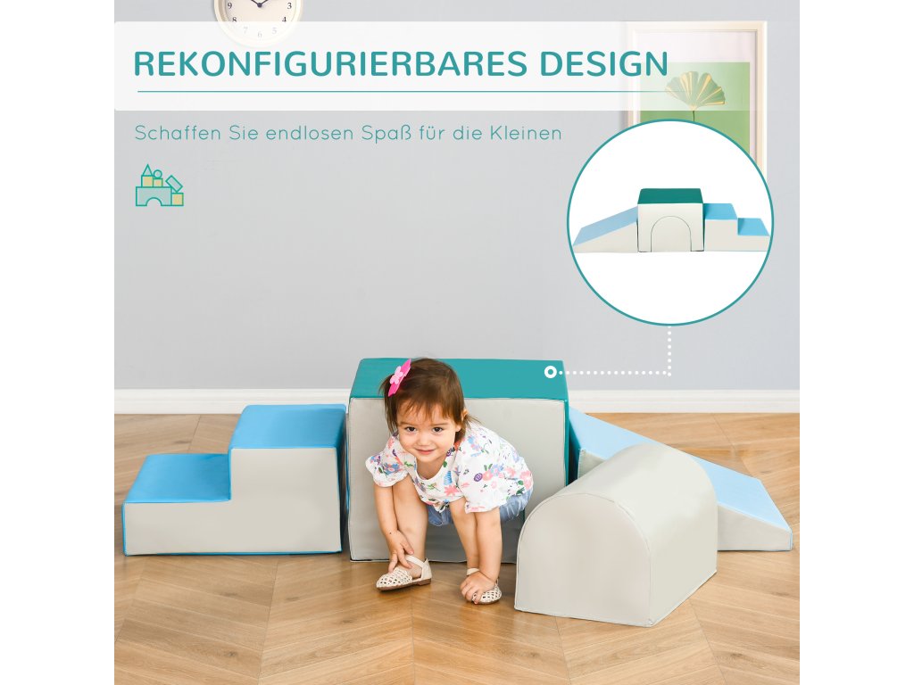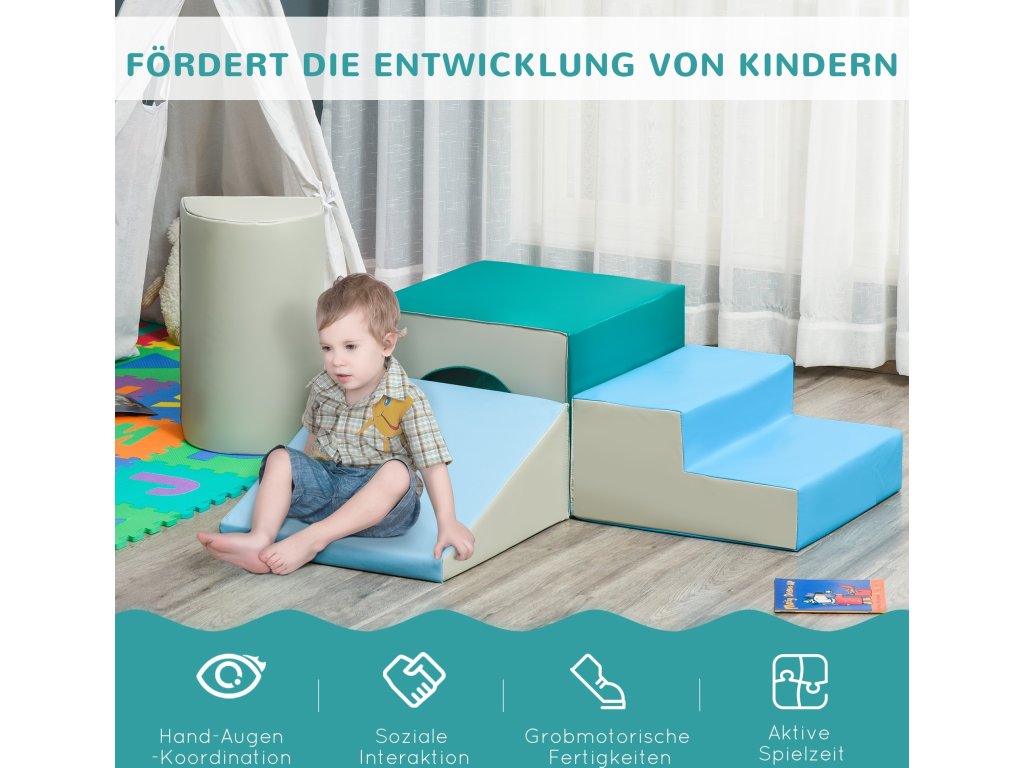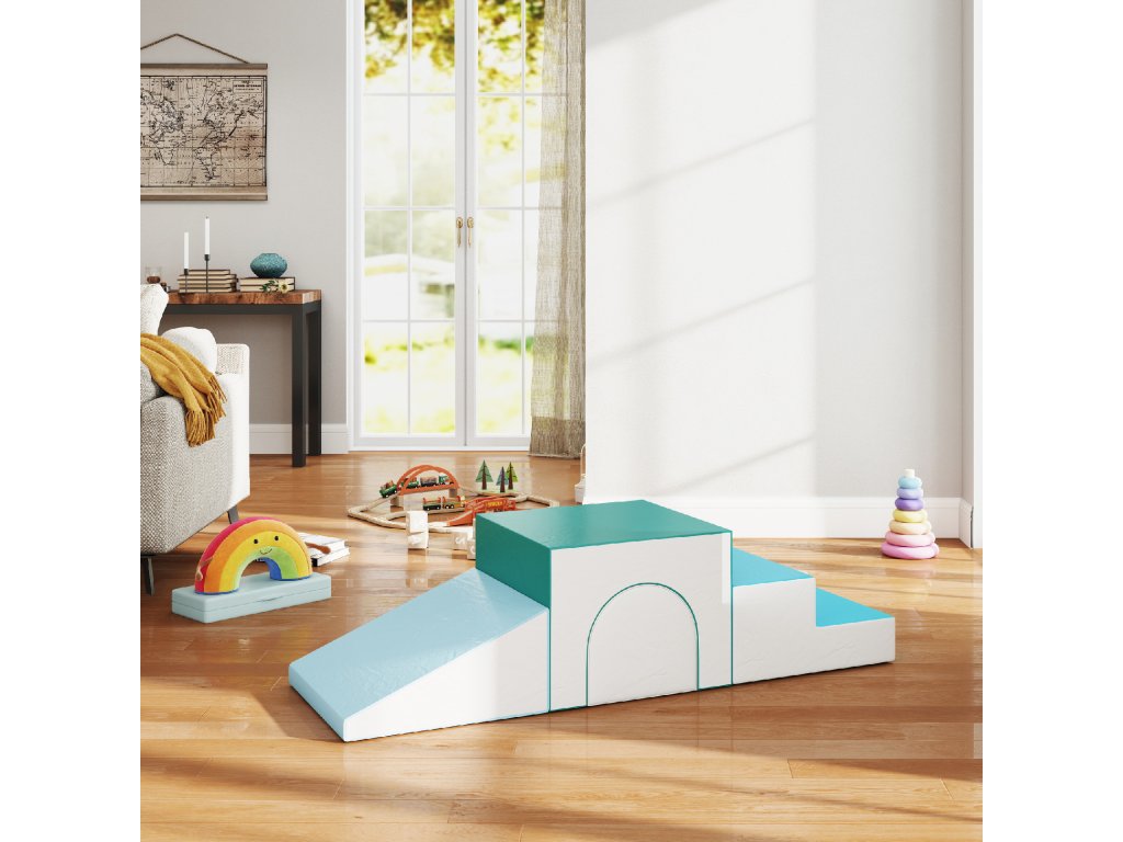 - Navrženo tak, aby umožnilo kojencům a batolatům lézt, lézt, prozkoumávat a klouzat pomocí měkkých stavebních bloků