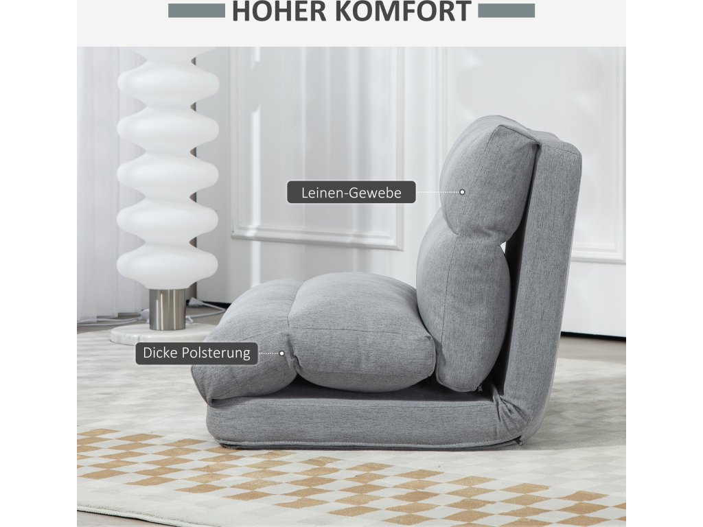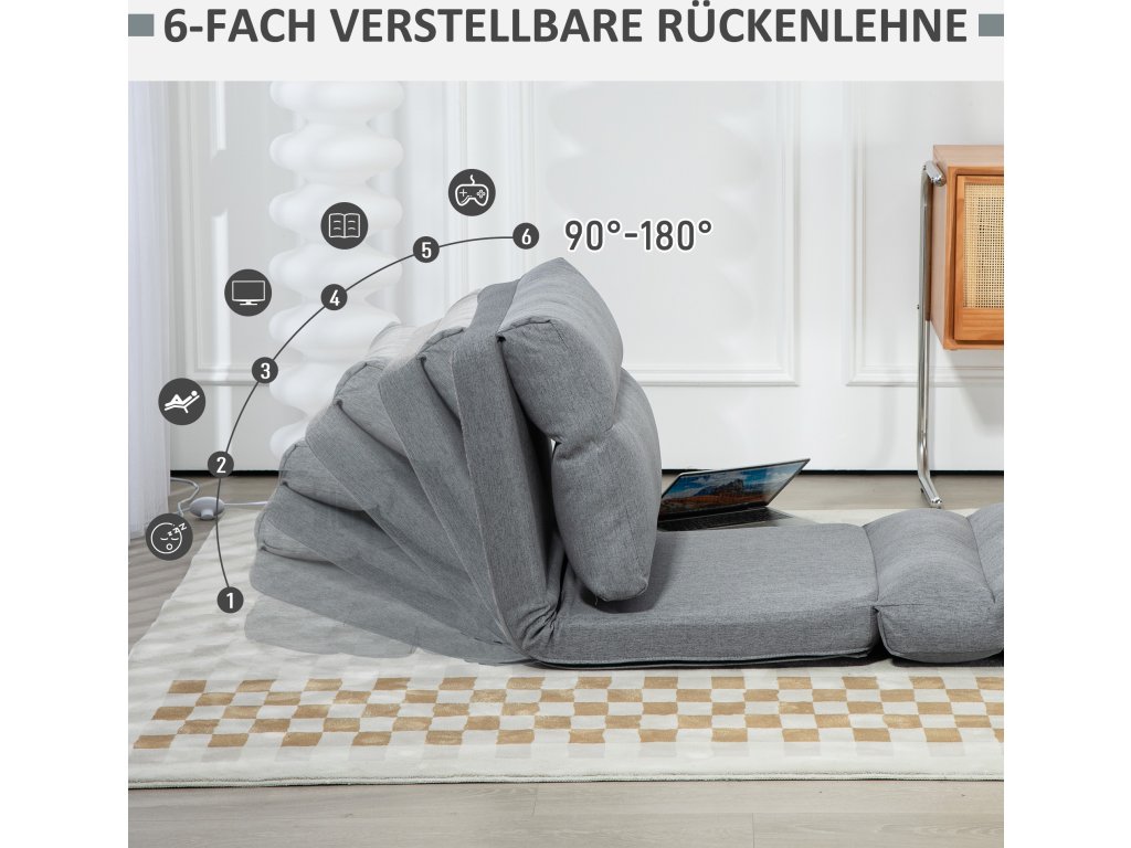 Toto multifunkční podlahové křeslo má praktické opěradlo s možností nastavení v 6 stupních a během chvilky ho lze přeměnit z lehátka na lenošku nebo postel. Podlahové křeslo zabalené do měkkého látkového potahu s velkorysým polstrováním nabízí optimální pohodlí pro filmové večery, meditaci, hraní her nebo prostě jen relaxaci. Skvěle se hodí do hobby místnosti, obývacího pokoje nebo dětského pokoje.