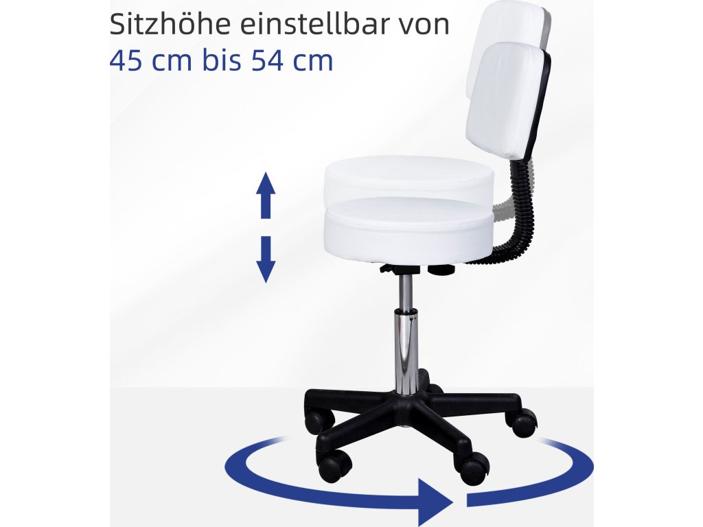 Pracovní otočná židle na kolečkách Angie je ideální pro ordinace, nehtová a masážní studia, kosmetické a kadeřnické salóny.