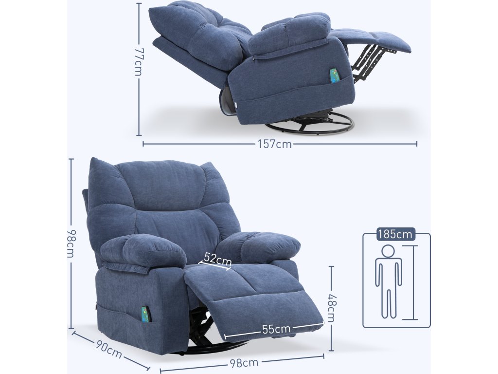 Relaxační křeslo s masážní funkcí 98 x 90 x 98 cm | modré
