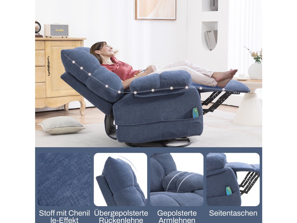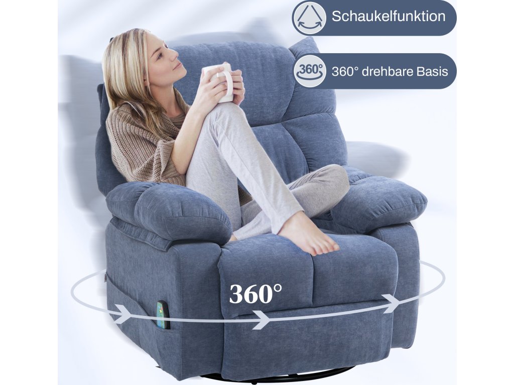 Hledáte pohodlné křeslo, ve kterém byste si mohli odpočinout po dlouhém pracovním dni? Masážní křeslo je ideální volbou. Je čalouněné měkkou žinylkovou látkou a má měkký opěrák a luxusní čalounění sedáku s pružinovým jádrem pro maximální pohodlí. Funkce vyhřívání TV křesla v oblasti ledvin a osm vibračních masážních bodů umocňují zážitek z relaxace. Ideální do obývacího pokoje, ložnice nebo domácí kanceláře.