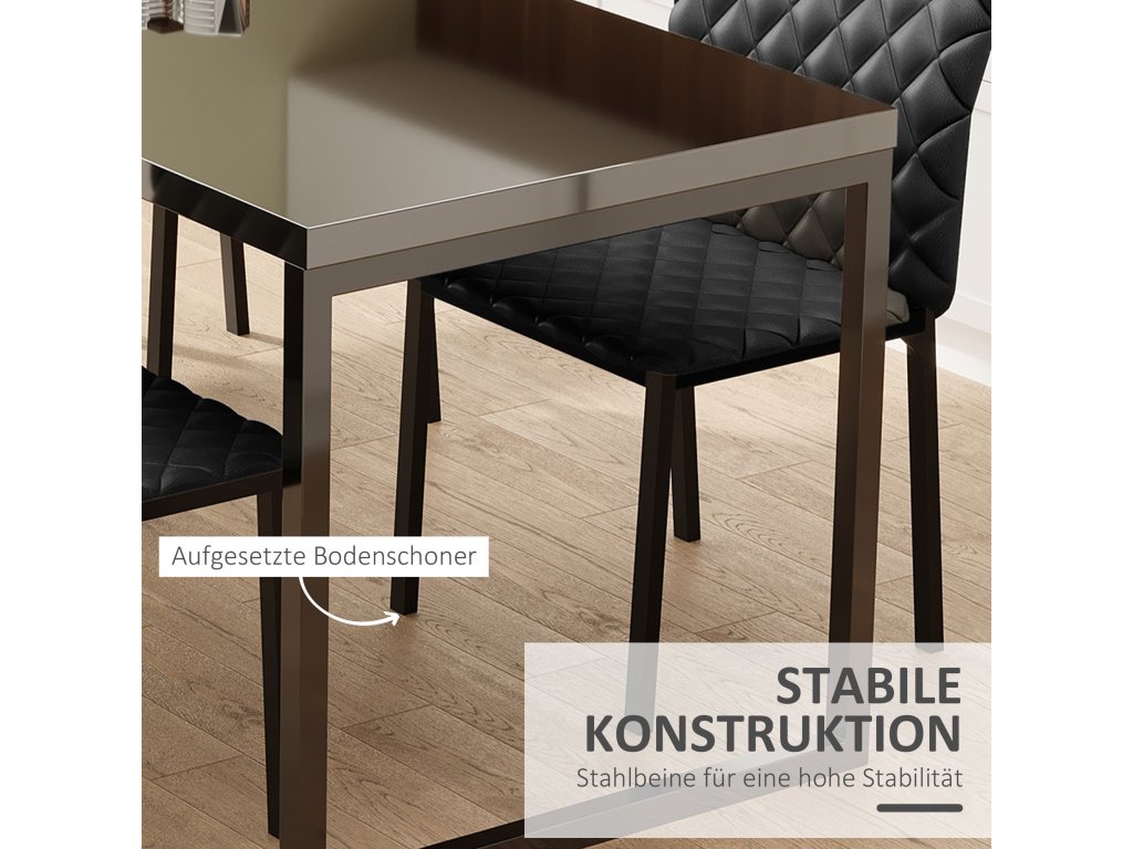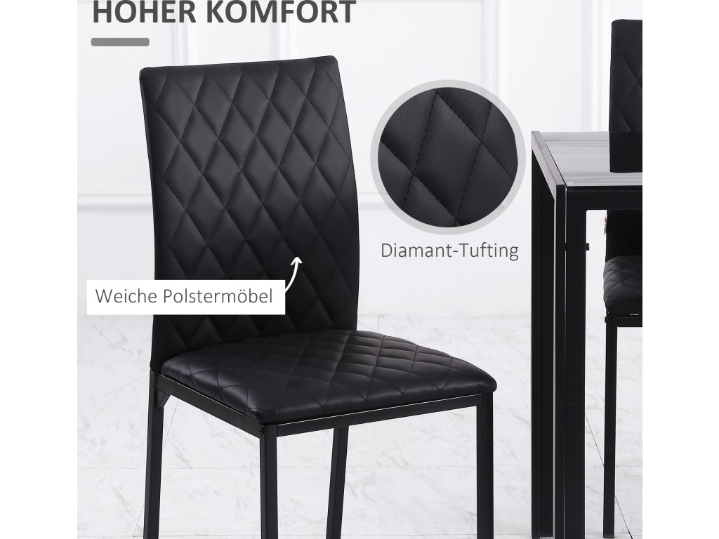 Vytvořte prostor pro každého hosta se sadou kuchyňských židlí, která se skládá ze 4 moderních židlí a hodí se k různým stylům vybavení a do každé domácnosti. Vysoké opěradlo nabízí optimální oporu a čalouněný sedák s potahem z imitace kůže zajišťuje maximální pohodlí. Díky ocelovému rámu jsou židle robustní a vhodné pro každodenní používání. Jsou vybaveny chrániči podlahy, které zabraňují poškrábání.
