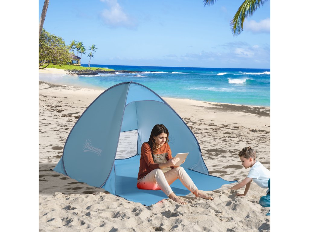 Samorozkládací sekundový plážový stan pro 2 osoby | modrý