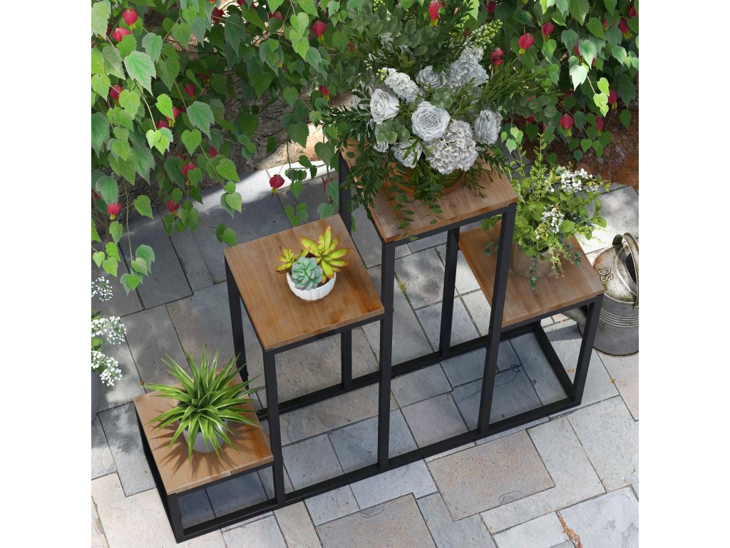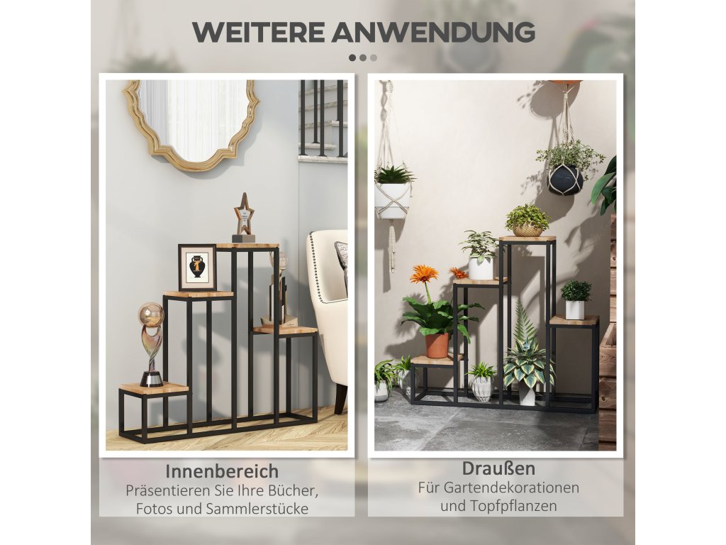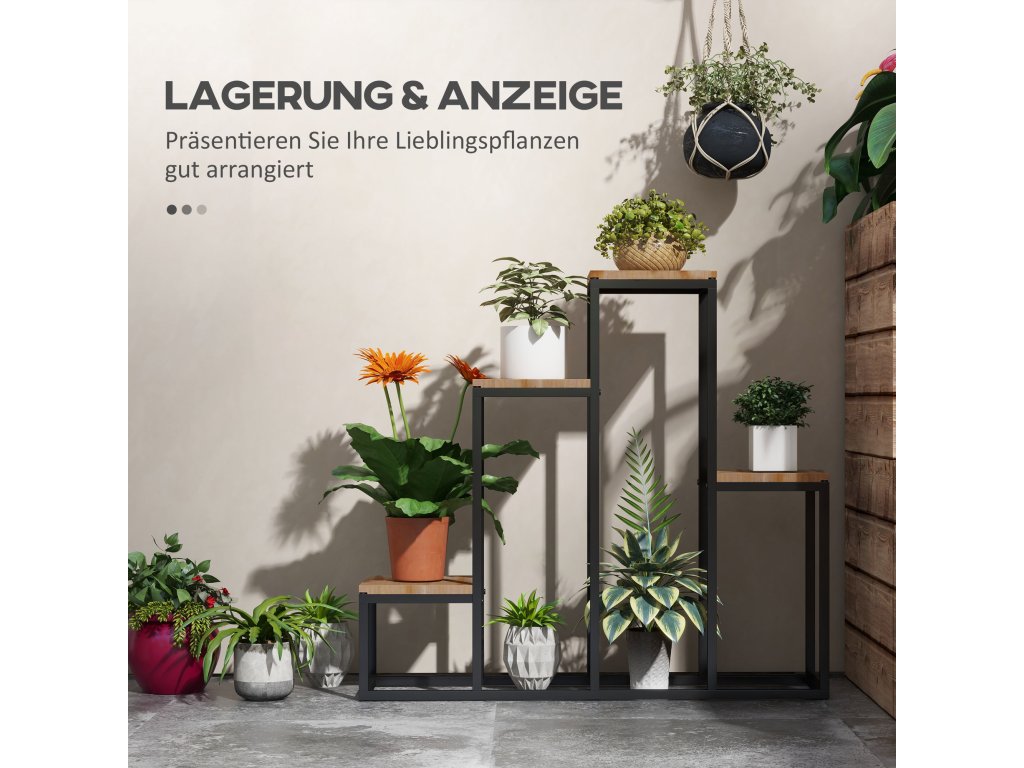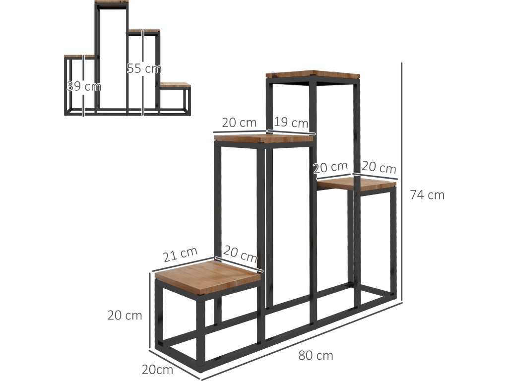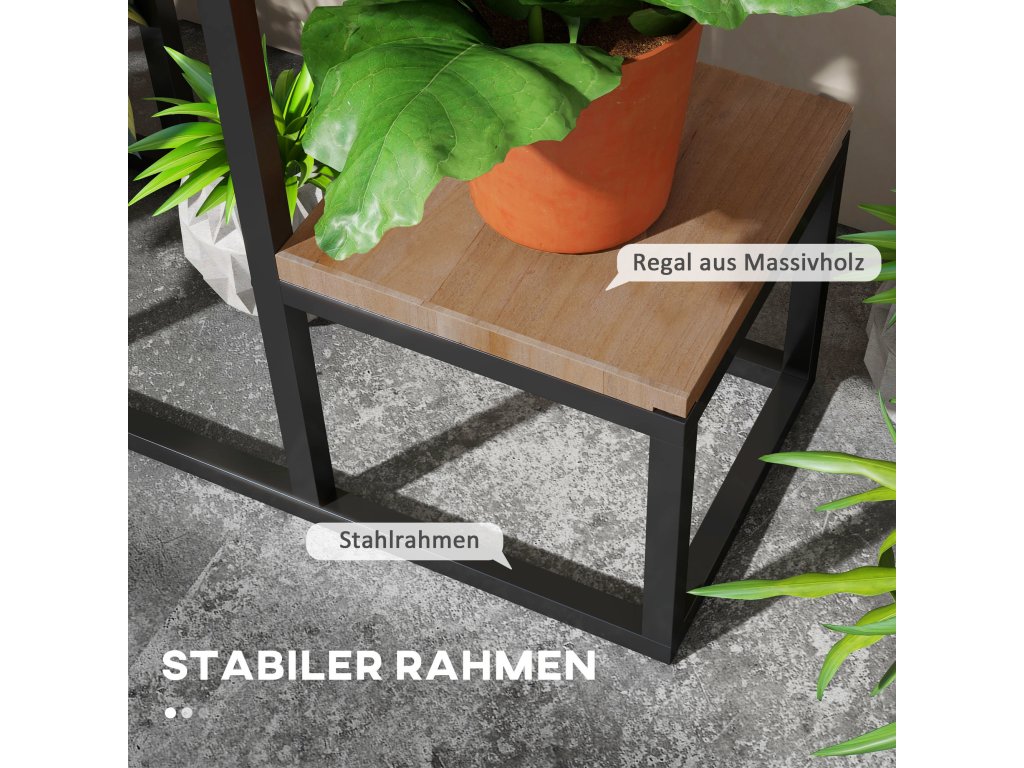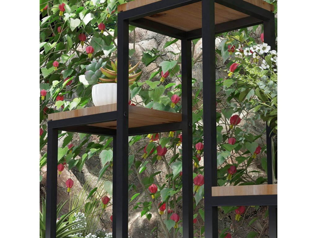 Stojan na květiny přitahuje pozornost všech a dodá šmrnc každé místnosti. Se svými čtyřmi policemi nabízí stylové odkládací plochy pro rostliny, knihy, fotografie a mnoho dalšího. Robustní konstrukce stojanu na květiny z oceli a dřeva zaručuje dlouholeté používání.