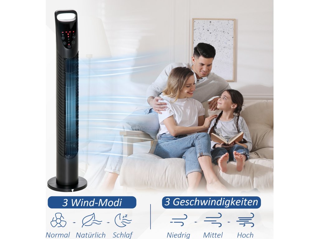 Tichý věžový ventilátor se 3 stupni ventilace | černý