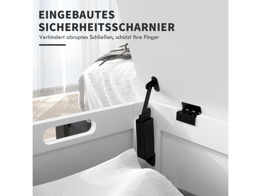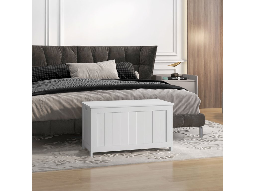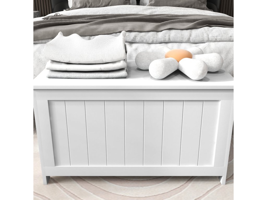 - Konstrukce boxu s víkem z bíle lakovaných MDF desek pro větší robustnost