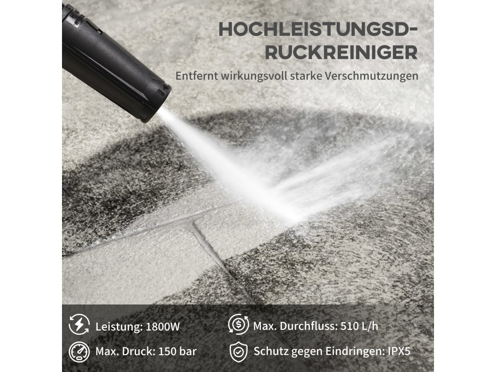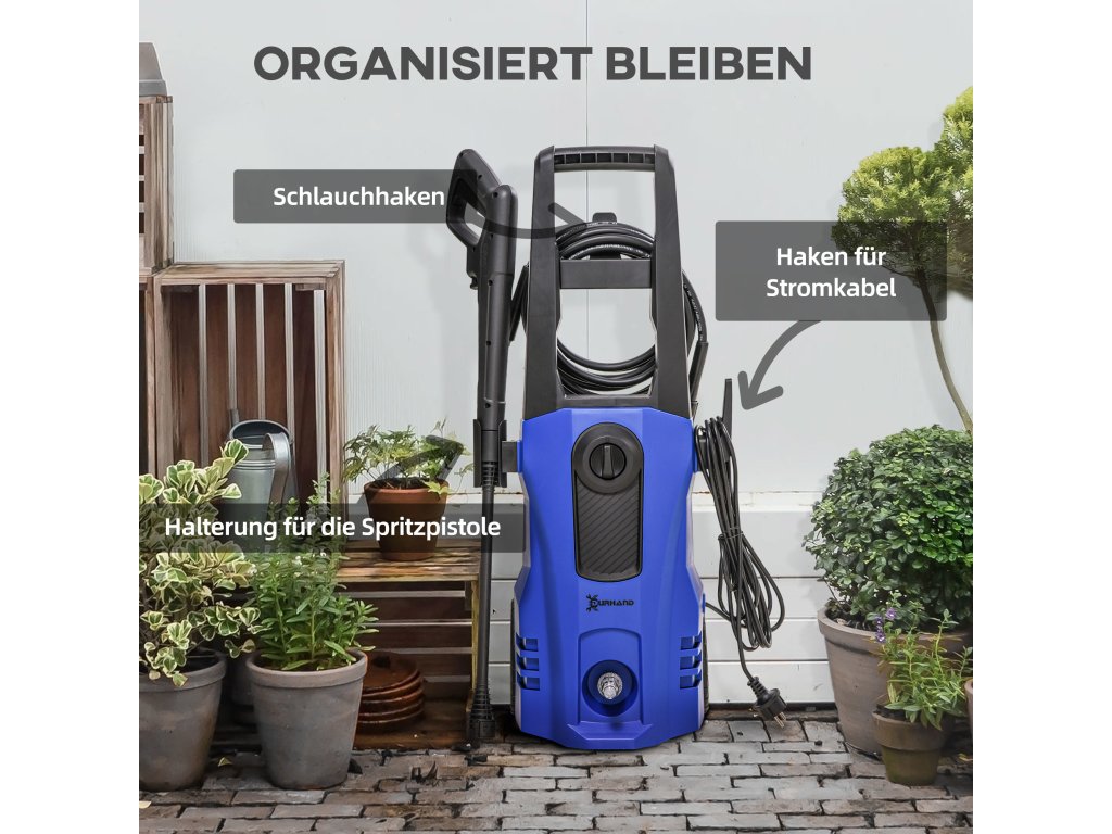 Dům vypadá zvenku staře? Auta jsou plná bláta a hmyzu? Pak se podívejte na tuto přenosnou tlakovou myčku. Čistič zvládne mnoho úkolů s vysokým výkonem: díky 1800 wattovému motoru, vysokému tlaku 150 barů a průtoku 510 litrů za hodinu snadno odstraní i odolné skvrny. Hadice je dlouhá 6 metrů, napájecí kabel 5 metrů. Díky kolečkům se přístroj snadno pohybuje po zahradě.