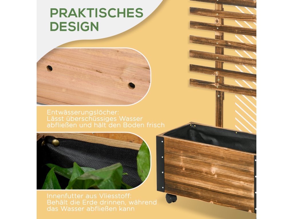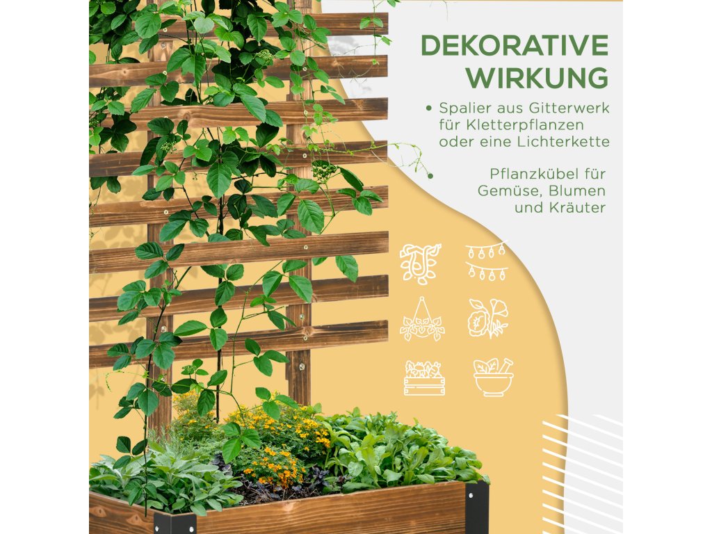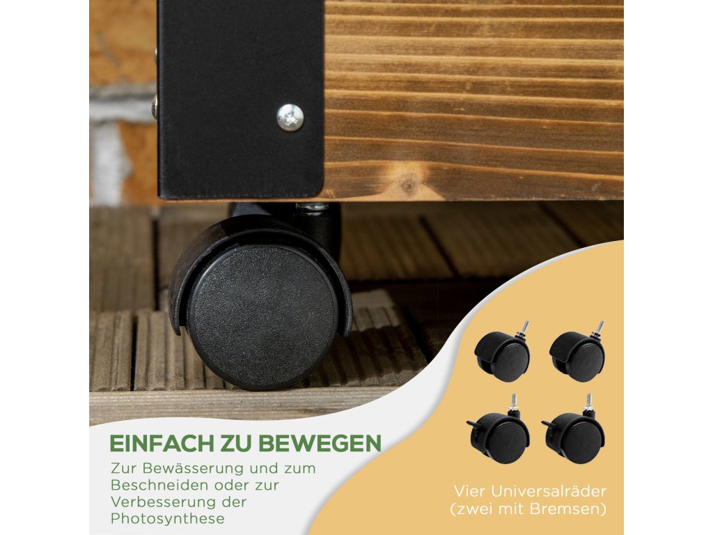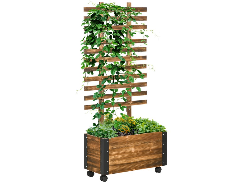 Tento vyvýšený záhon je vybaven pomůckou pro šplhání a je krásnou ozdobou vaší zahrady. Ať už se jedná o zeleninu, bylinky nebo květiny - krása každé rostliny se v tomto vyvýšeném záhonu projeví v plné kráse. Vyvýšený stojan chrání vaše rostliny před škůdci, přízemními mrazíky a vlhkostí. Čtyři kolečka umožňují přesouvat květináč z jednoho místa na druhé a najít slunečné místo. Tento vyvýšený záhon nabízí flexibilní a prostorově úsporné pěstování rostlin na nejmenším prostoru.
